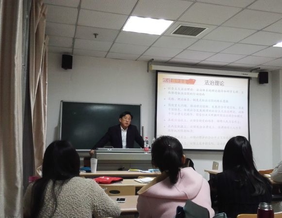 王老师详细介绍了我国法治的历史道路,新中国“法治”一词最早出现于1979年9月9日中央“64号文件”《关于坚决保证刑法、刑事诉讼法切实实施的指示》,2007年,党的十七大将执政三原则写入《中国共产党章程》首次提出“全面落实依法治国方略,加快建设社会主义法治国家”,党的十八大明确提出全面推进依法治国,加快建成社会主义法治国家,对法治建设作出重大部署。