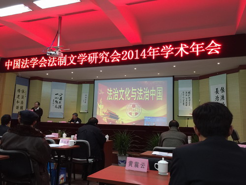 2014年12月30日,以“法治文化与法治中国”为主题的中国法学会法制文学研究会2014年年会在北京召开。中国法学会党组书记、常务副会长陈冀平出席会议并作重要讲话。司法部原部长邹瑜,民盟中央副主席、中国作协副主席、著名作家张平致电祝贺。来自全国各地的法治文化研究者和法律实务部门代表参加了会议。我校法治文化研究领域的刘斌教授、黄震云教授、邹玉华教授、董燕副教授应邀参加了本次会议。刘斌教授、董燕副教授做了主题发言。