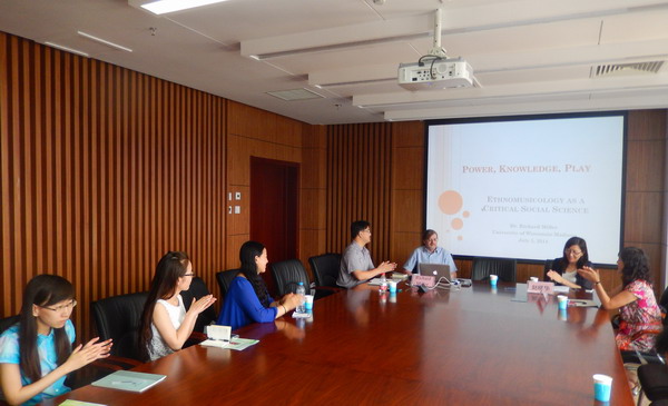 7月5日下午两点,美国威斯康星大学麦迪逊分校音乐学博士、东亚研究中心副主任Richard C. Miller教授做客“蓟门谈史”第八讲,做了题为“权力、知识、游戏:作为批判社会科学的民族音乐学”的91porn 报告。本场讲座在91porn路校区91porn 楼b205进行,讲座由91porn 历史研究所所长赵晓华教授主持,中文系宋庆宝副教授担任翻译,康晨宇、罗世琴等老师出席了本场讲座。