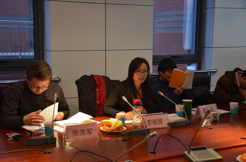 此次论坛由张浩军副教授主持。罗朝慧副教授做了题为“黑格尔自由—权利辩证法视野下财产所有权概念的三重自由意境”的报告。她首先向大家讲述了选择黑格尔作为研究对象的原因和背景:一是出于对黑格尔的敬佩,二是对法哲学和政治哲学的兴趣。她认为,作为个人权利的生命、身体及财产所有权,是黑格尔自由-权利辩证法中的一个特殊环节,它根本上源于人自身的自由和理性精神,是个人获得自我认同、主体间认同以及其他精神自由和权利的自然基础与物质前提,具有不可侵犯和剥夺的神圣性。但是,如果将所有权至上的自由理想加以直接实践,便是人对物质利益和财富的自由争夺,精神和道德将沦丧其中。罗朝慧老师从所有权概念的神圣性、所有权作为单一环节的理想性和所有权的客观现实性三个方面进行了详细论述。